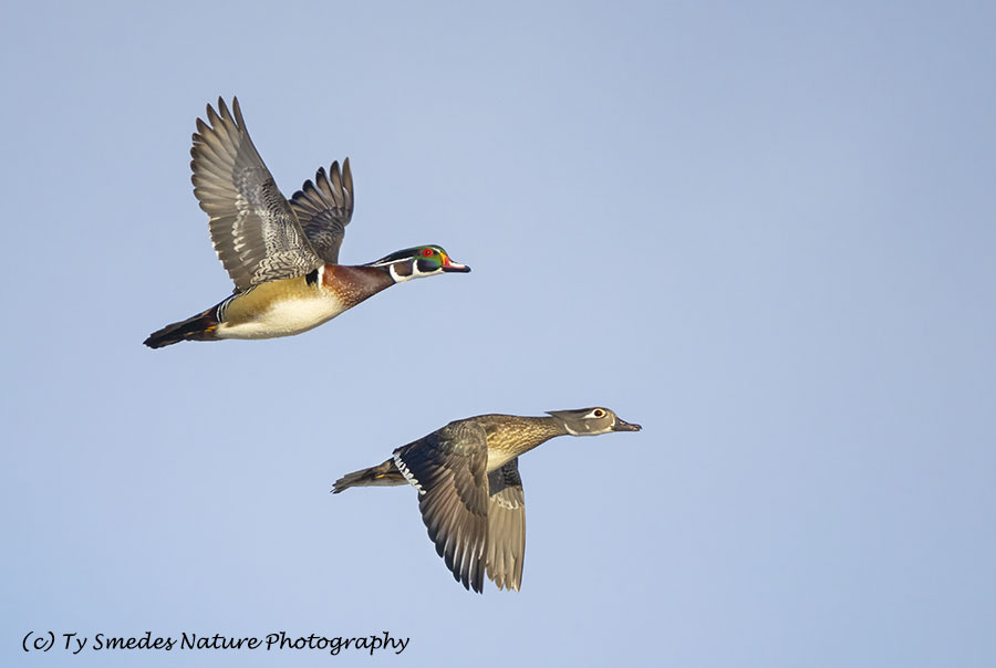 Wood Duck Drake & Hen Flyby